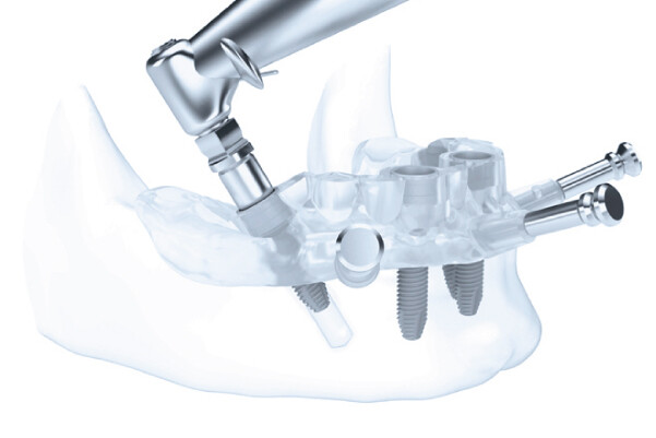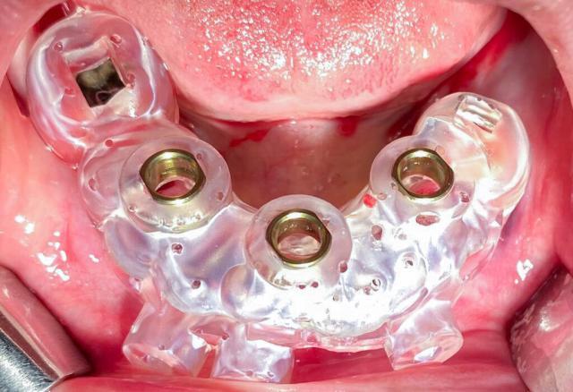 La férula se emplea el día de la operación para evitar tener que abrir la encía tal y como se hace en la cirugía tradicional. Por otra parte, permite que el cirujano solo perfore hasta la profundidad necesaria.